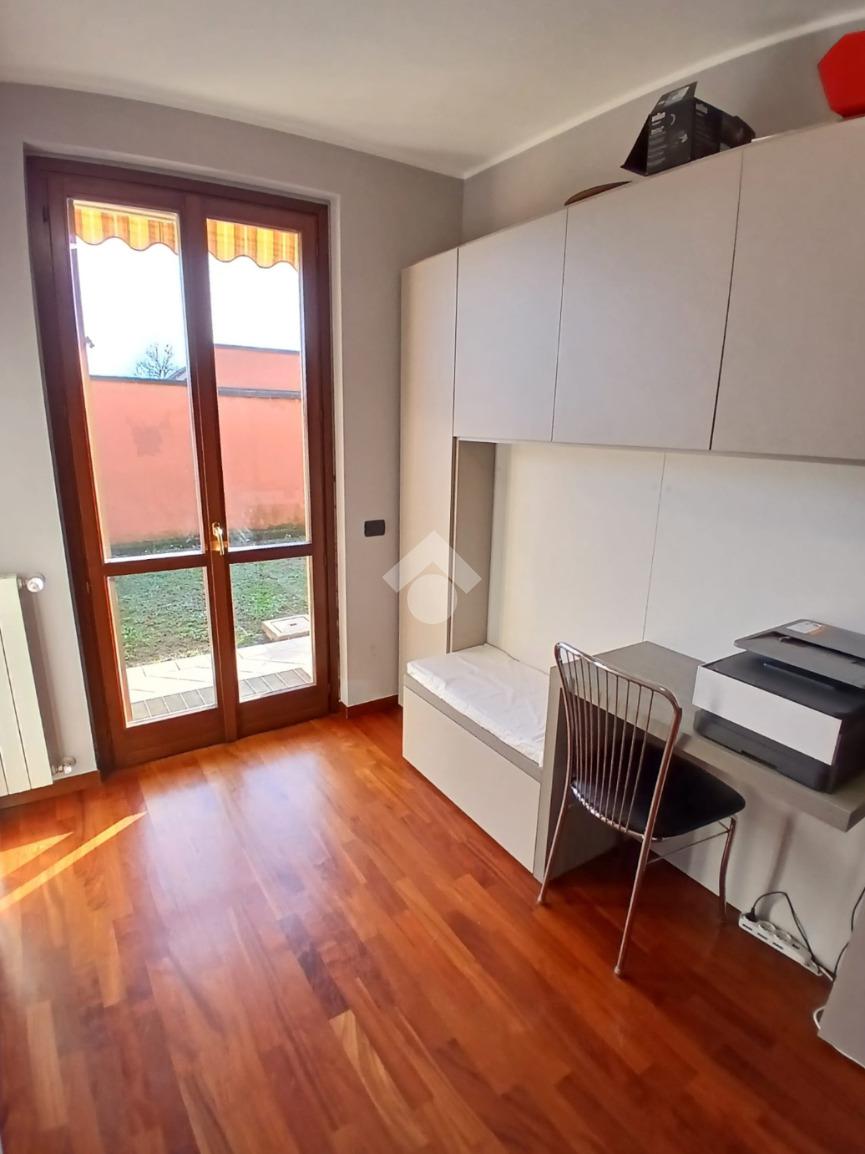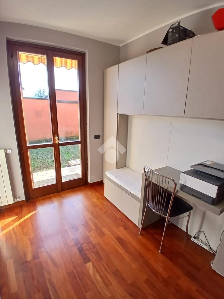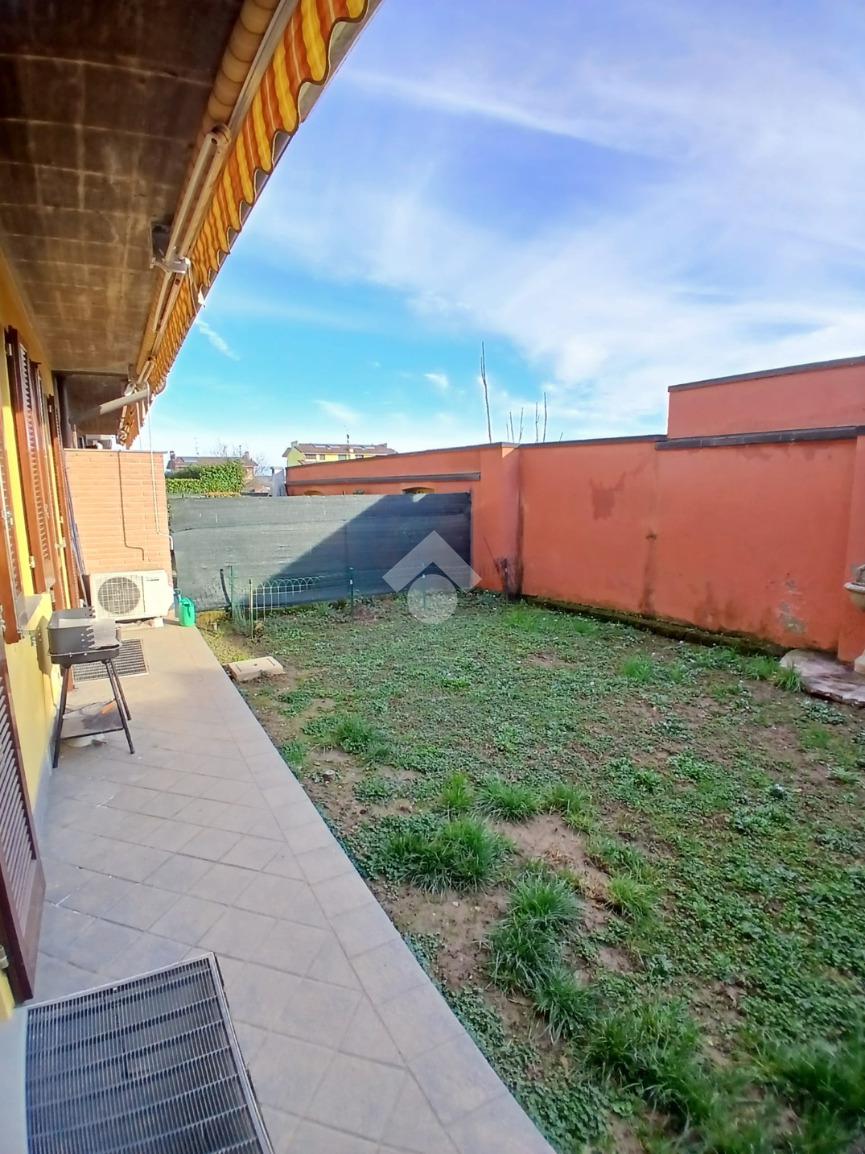 L’appartamento è circondato da un giardino privato fronte e retro, perfetto per momenti di relax all’aperto o per chi ha animali domestici.